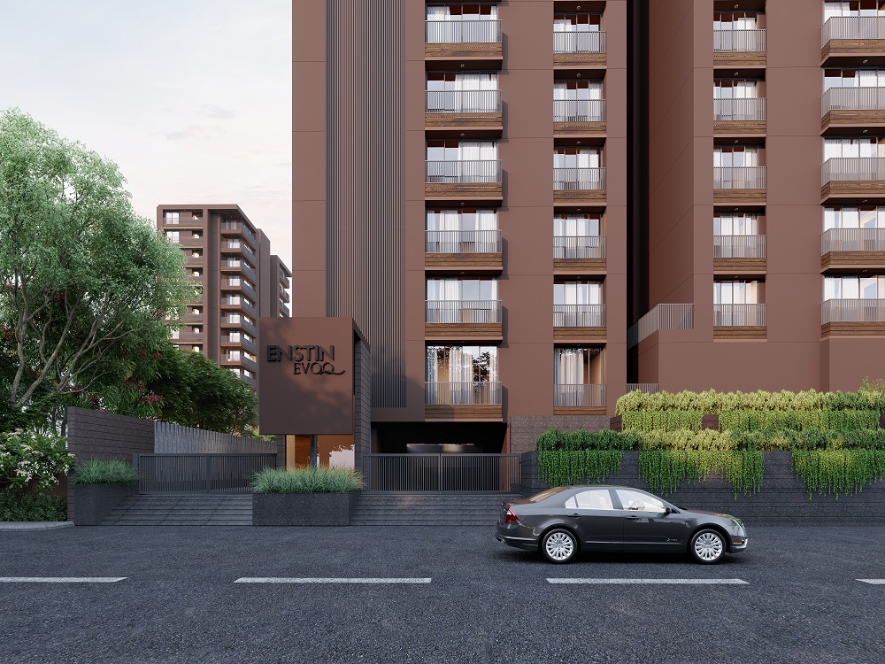 Enstin Evoq by Saga Group Premium apartment residential project in Science City, Ahmedabad in offering spacious 3 and 4 BHK Flat with sizes ranging