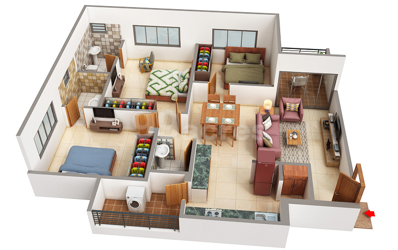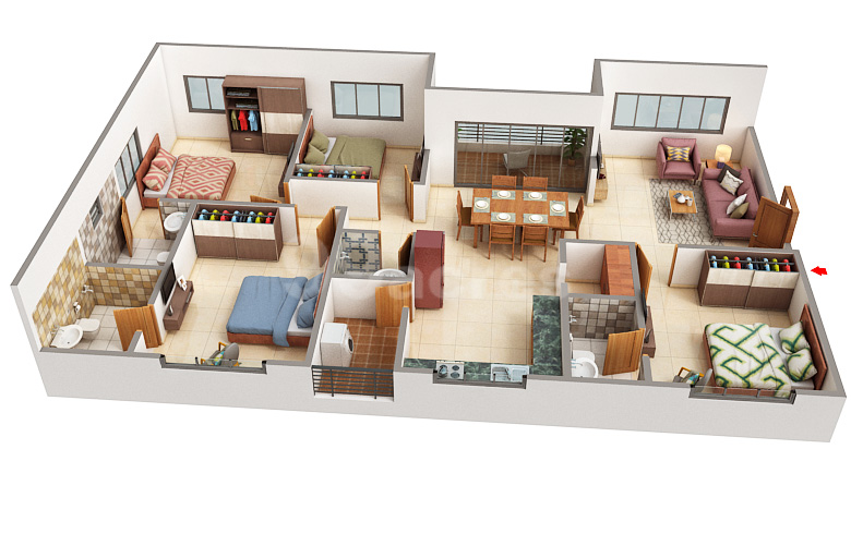 Bedroom 3 BHK Flat |