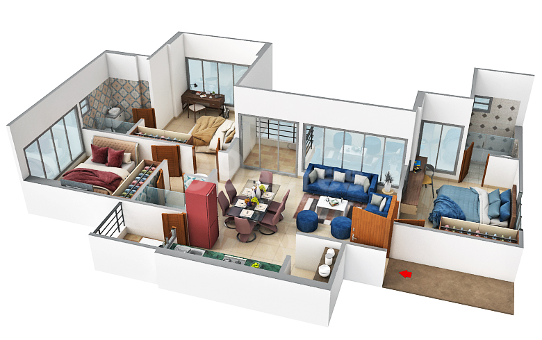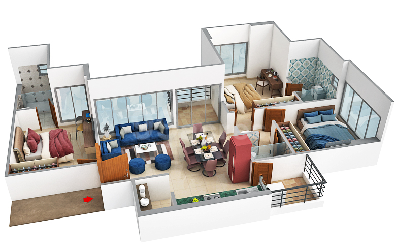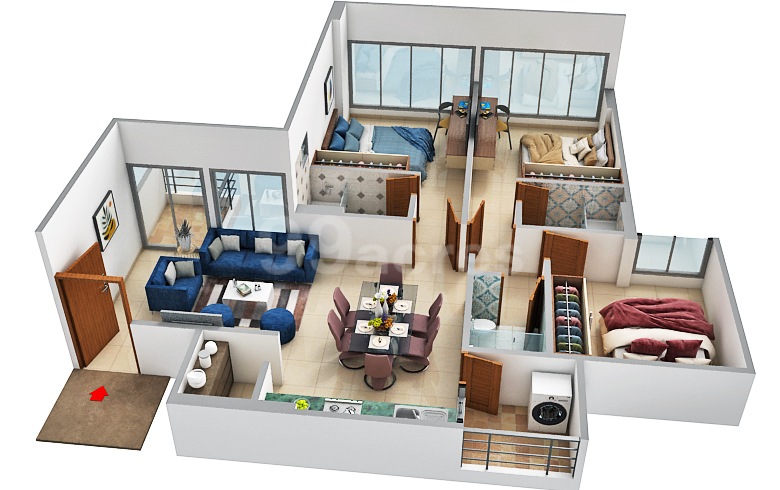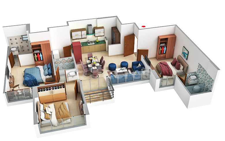 Bedroom 3 BHK Flat |