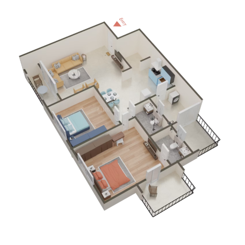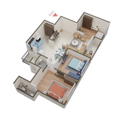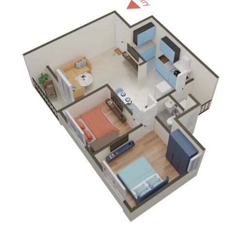 Bedroom 2.5 BHK 2 BHK Flat |