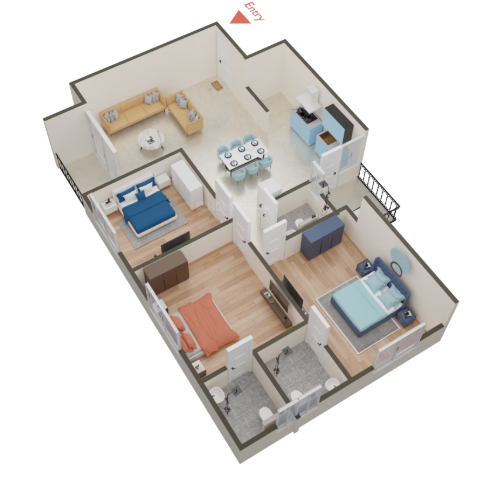 Bedroom 3 BHK Flat |
