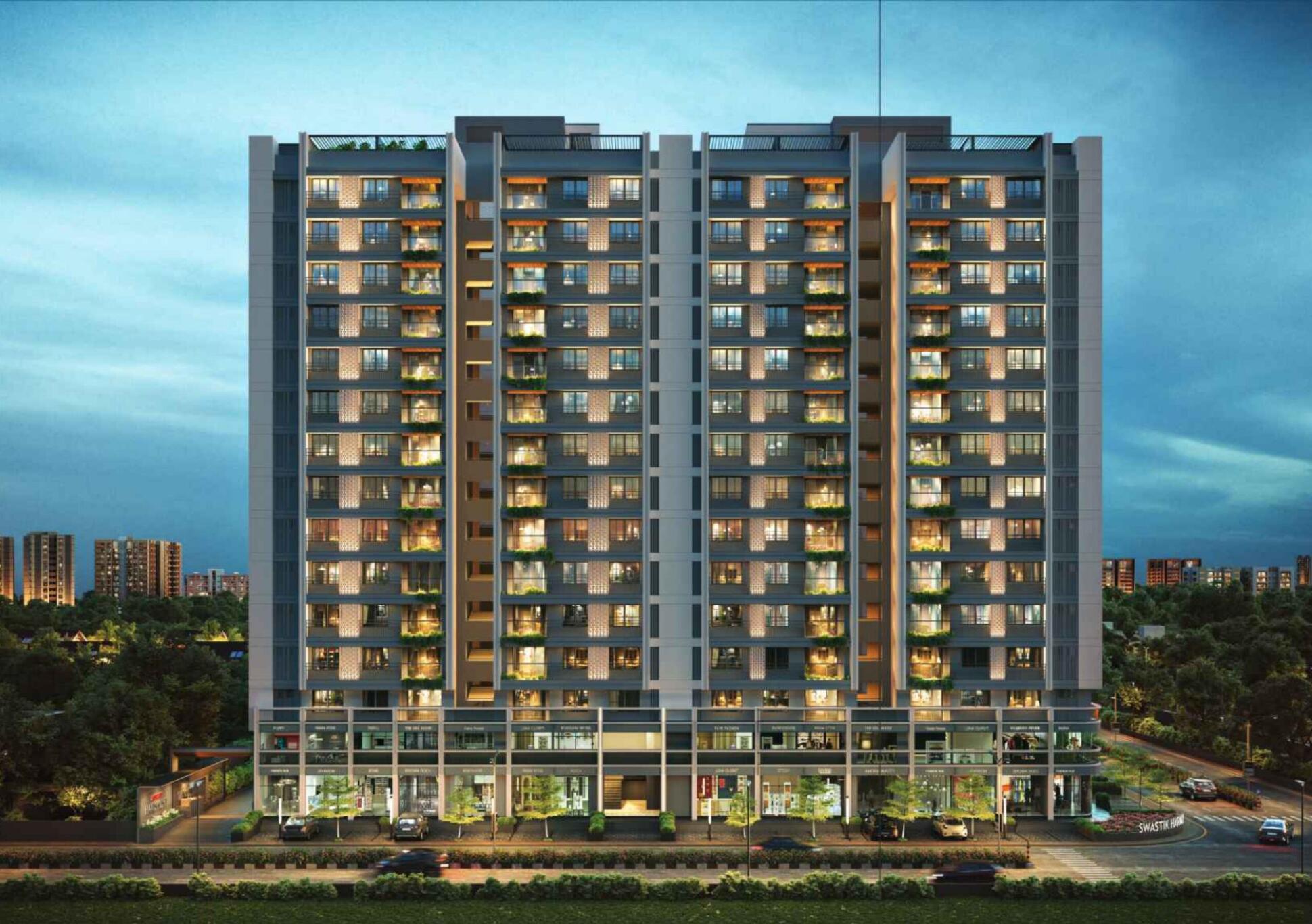Strategically located in Zundal, one of Ahmedabad’s most prestigious neighborhoods, the project provides excellent connectivity to major city hubs. Key