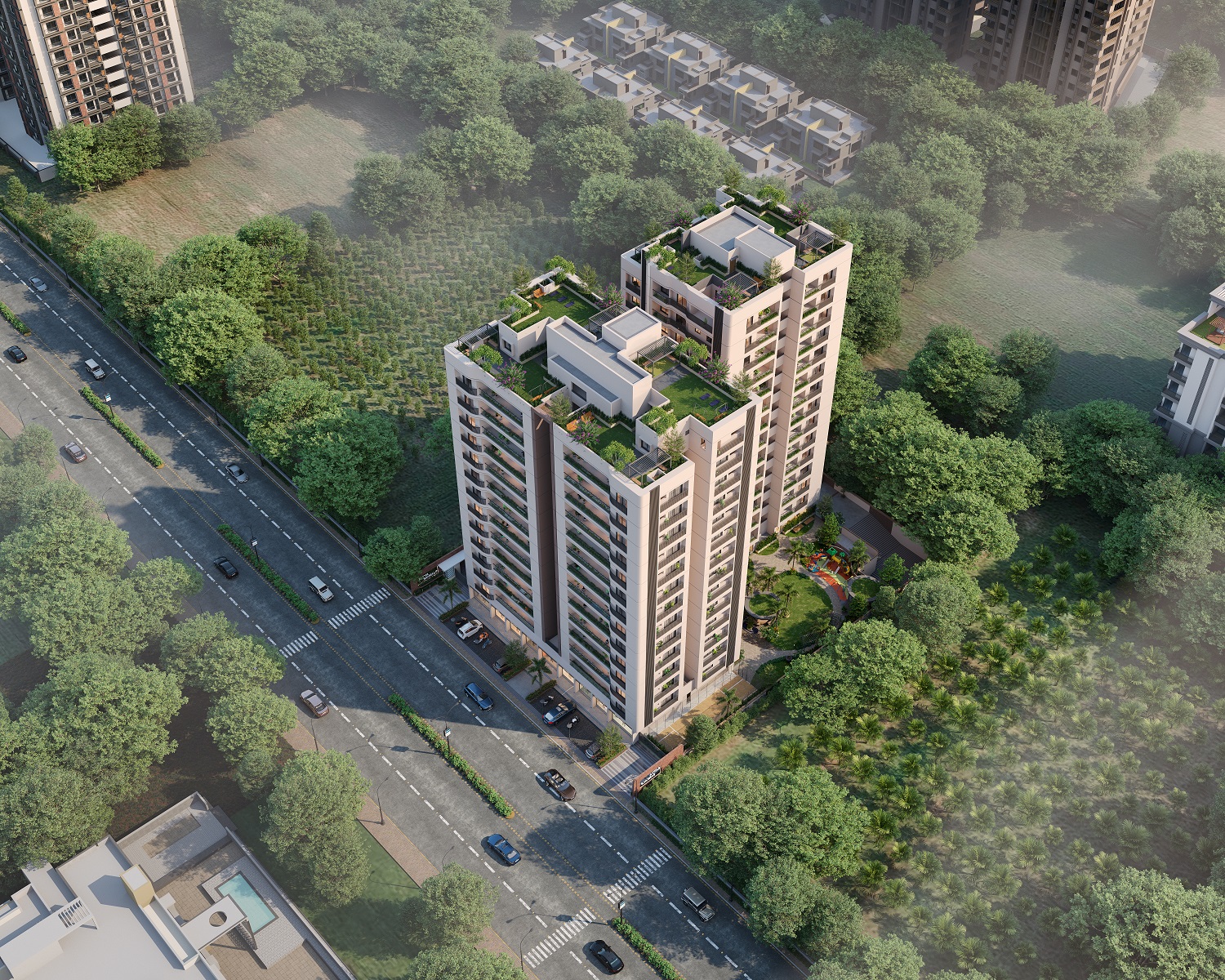 Strategically located in Vaishnodevi, one of Ahmedabad’s most prestigious neighborhoods, the project provides excellent connectivity to major city hubs.