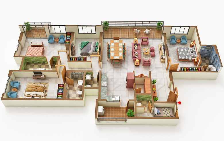 Bedroom 4 BHK Flat |